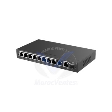 Nombre de ports   1 – 8 PoE+, 1 uplink combo